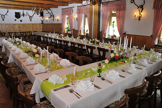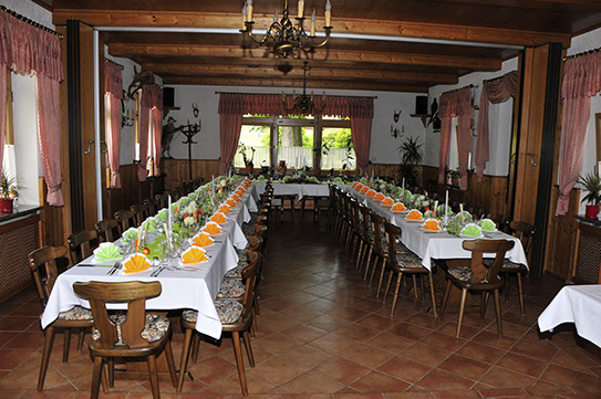 Der kleine Saal ist ideal für Familienfeiern, Klassentreffen, Vereinsfeiern und bietet für 70 Pers. Platz. Er kann auch Für kleinere Feiern durch eine Schiebetür geteilt werden. Er bietet eine sehr gemütliche Atmosphäre durch seine schöne Holzdecke und den direkten Zugang zum Biergarten. Damit Ihre Feier bei allen in guter Erinnerung bleibt, werden alle Details vorab mit Ihnen besprochen. Egal ob Sie nach Karte, eine Menüfolge oder ein Büfett wünschen.